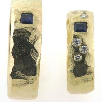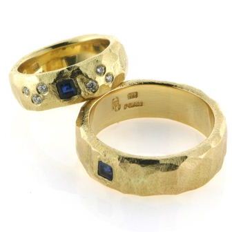 Ringe 14 kt. cárer slebne blå safirer og 6 brillianter