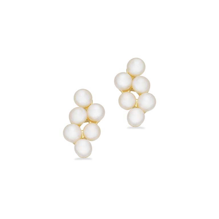 Elegante ørestikker i forgyldt sølv med seks ferskvandskulturperler samlet i en let aflang form. Perlerne skaber et blødt og harmonisk udtryk med en fin fylde, der giver lidt mere synlighed på øret.