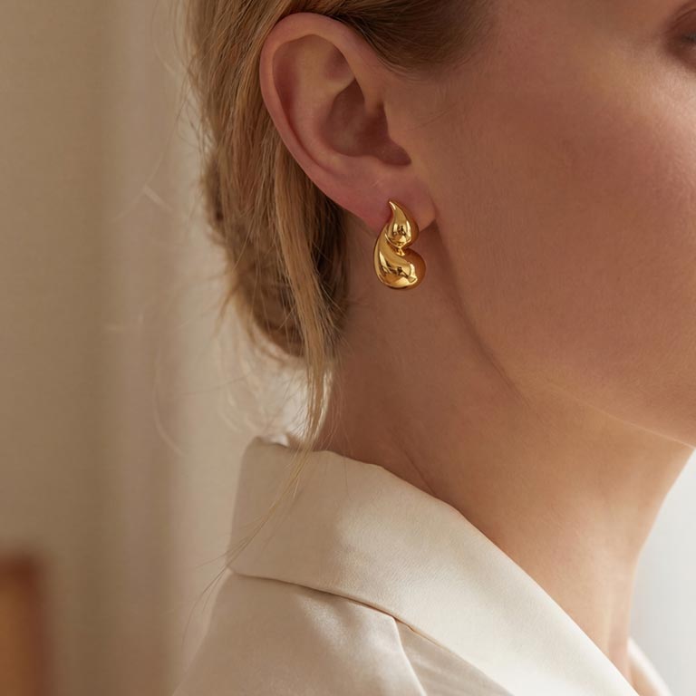 Den afrundede form følger øret naturligt og gør dem behagelige at bære. Samtidig tilfører det enkle design et moderne twist uden at blive for markant.
