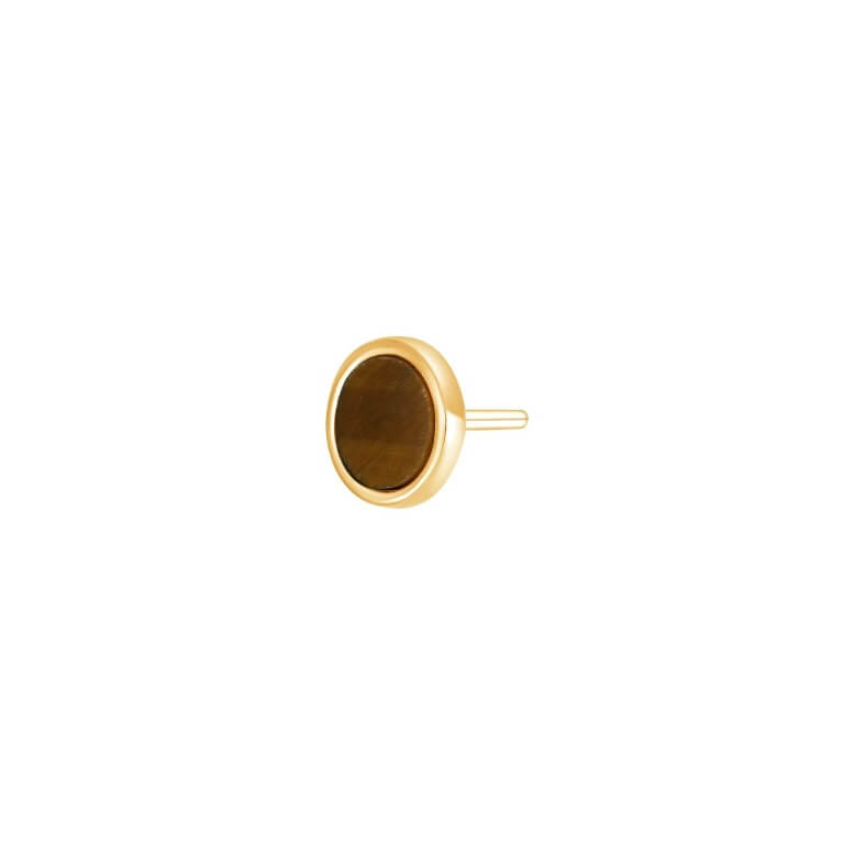 Smart rund ørestik i forgyldt sterlingsølv med en changerende brun tigerøje sten.