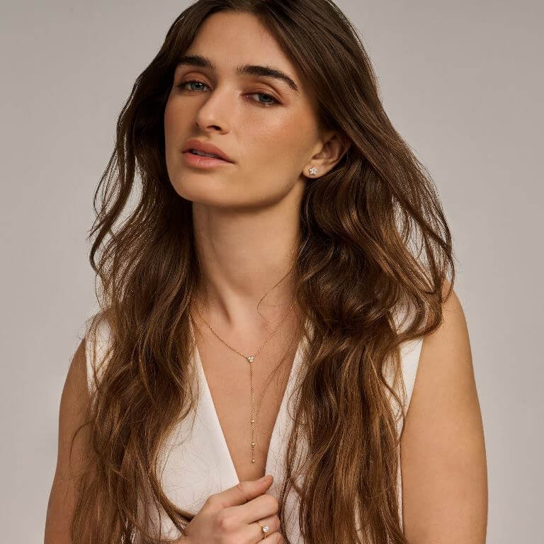 Alma Y-halskæden er fremstillet i 18 karat forgyldt 925 sterlingsølv og har et moderne, stilrent udtryk. Den karakteristiske Y-form skaber en smuk silhuet og giver halskæden et let og elegant look, der passer perfekt til både hverdag og særlige anledninger. Selve vedhænget måler 9,5 cm.