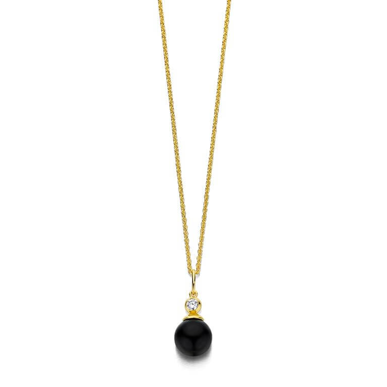 Spirit Icons Figaro halskæde forgyldt sølv med sort sten 9mm (42+3 cm)
