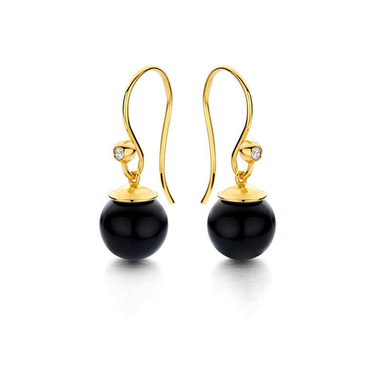 Figaro øreringe i forgyldt sterlingsølv, med zirkonia og 9mm sort sten. Stilfuld og elegant ørering, som vil kunne bruges til enhver lejlighed.