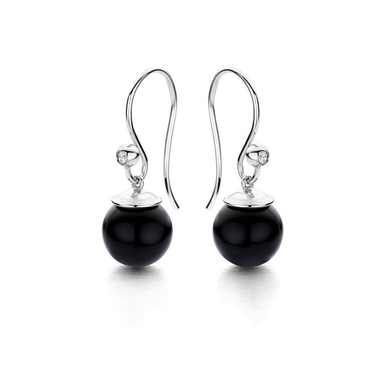 Figaro øreringe i sterlingsølv, med zirkonia og 9mm sort sten. Stilfuld og elegant ørering, som vil kunne bruges til enhver lejlighed.
