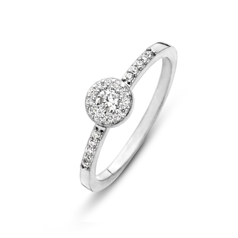 Smuk og romantisk ring i sølv hvor toppen og ringskinnen er flot prydet med funklende klare zirkonia sten