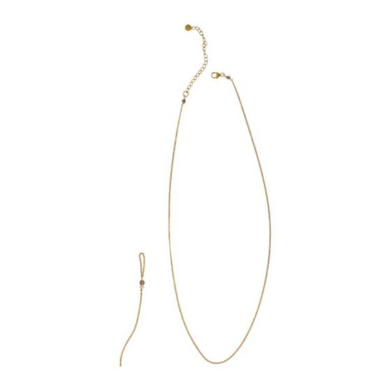 Halskæde i panserkæde med aftageligt kædevedhæng. Det aftagelige kædevedhæng gør, at kæden kan bruges som almindelig kæde, evt. med andre vedhæng, eller du kan transformere den til en klassisk y-kæde. Vedhænget er pyntet med en røgkvarts og pink opal ædelsten, ligesom der ved låsen også sidder to pink opal ædelsten.