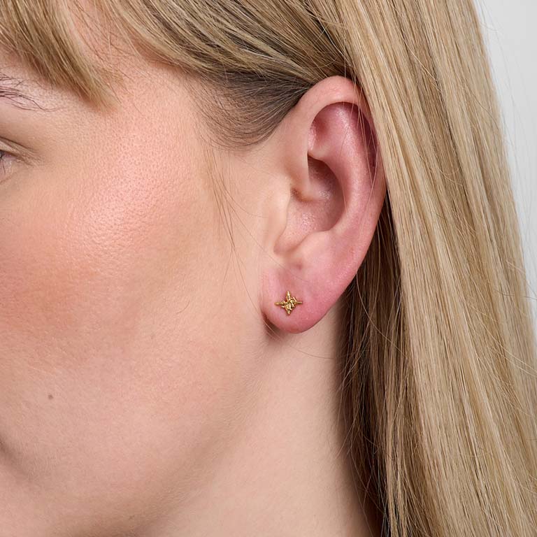 Designet er inspireret af isens rå tekstur. De små ørestikker har en organisk overflade med polerede detaljer, der fanger lyset og giver et enkelt, men markant udtryk.
