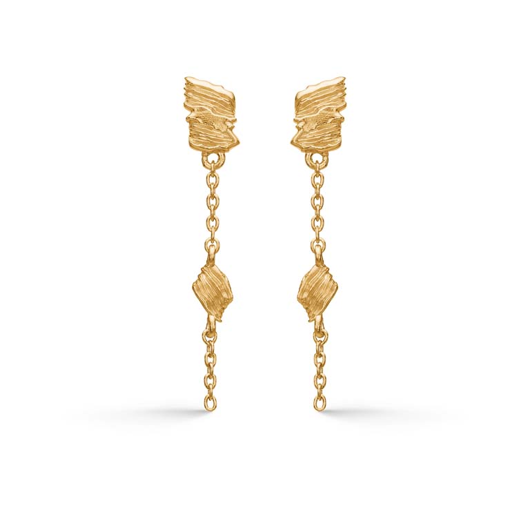 Ørestik inspireret af gletschere med en is-lignende tekstur, der kombinerer mat og poleret finish for et organisk look. Den fine kæde tilføjer bevægelse og giver et let, elegant udtryk.