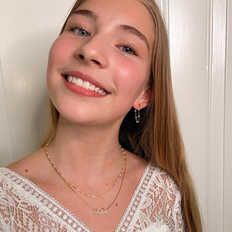 Navnehalskæderne fra Studio Z udgør den perfekte kompagnon til hverdagen. Kæderne er lavet i et simpelt og moderigtigt udtryk som både kan bæres alene eller som en fin detalje sammen med dine øvrige kæder. Selve skriften er organisk og feminin som gør den anvendelig til enhver lejlighed.