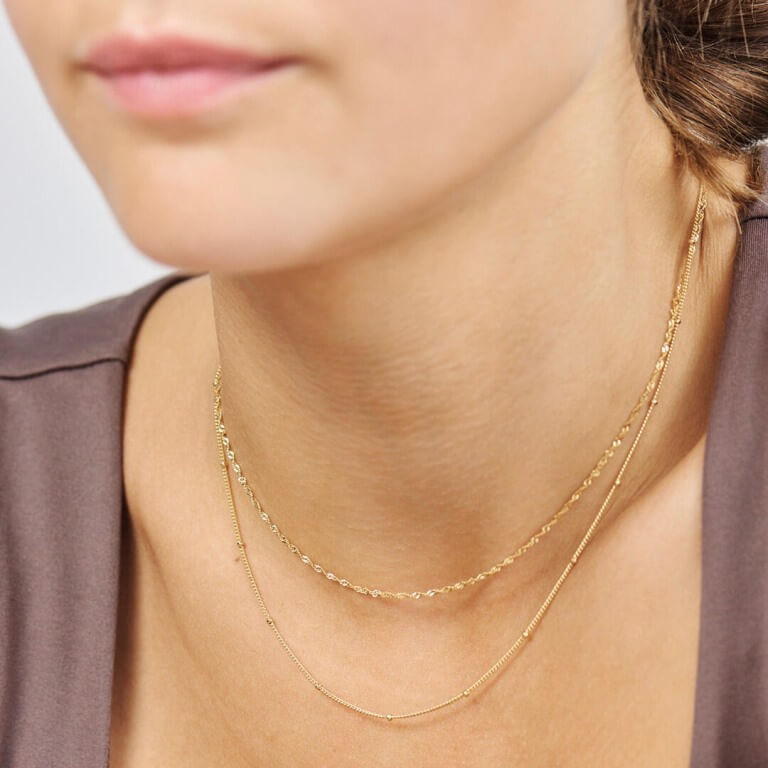 Designet er et klassisk halskæde med en slank kæde og små jævnt placerede blanke kugler. Kuglernes blanke overflade reflekterer lyset og giver kæden et levende, men diskret udtryk. Den lette struktur gør den enkel at bære alene, men også oplagt at kombinere med andre kæder.