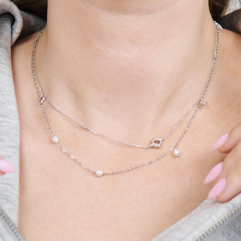 Studio Z "Trace Pearl" halskæde sølv m. perler (40-45 cm)