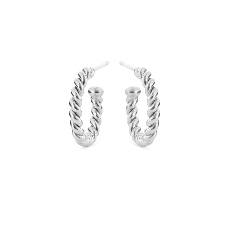 Skønne øreringe i sølv formet som en snoet tråd.