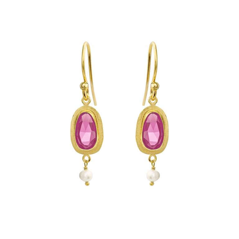 Susanne Friis Bjørner øreringe forgyldt sølv m. pink krystal + fvp