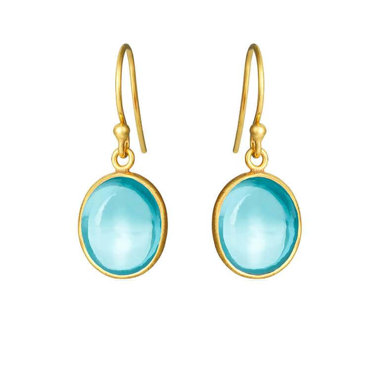 Susanne Friis Bjørner øreringe Oval Cabochon forgyldt sølv m. synt. blå topas