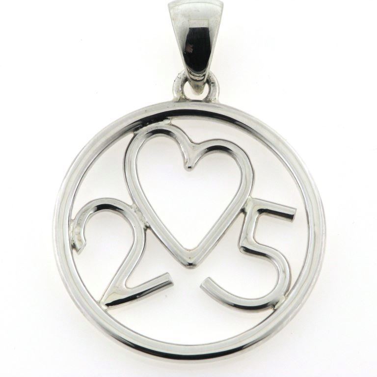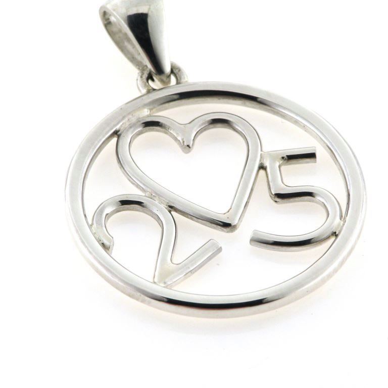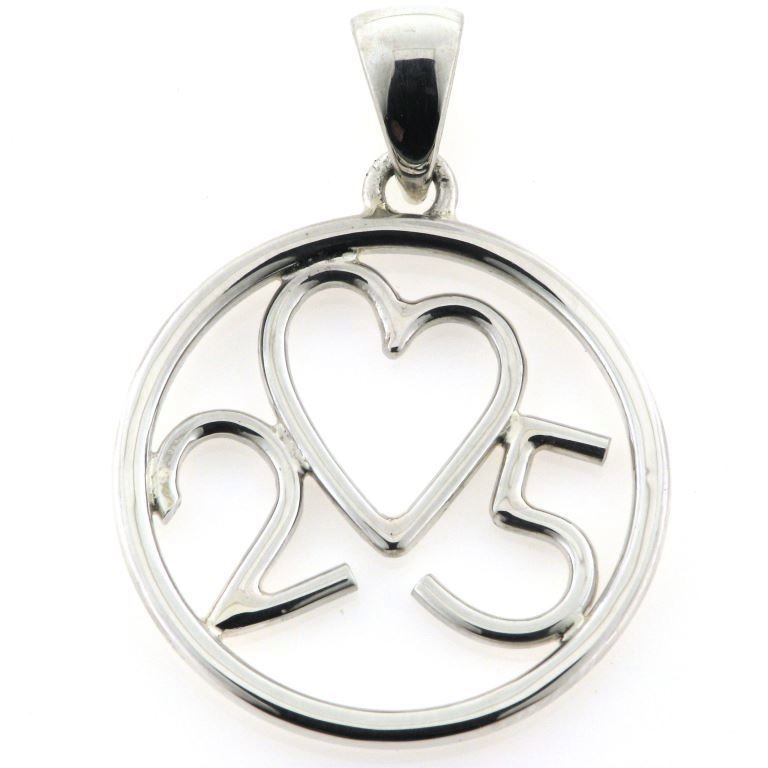 Vedhæng med monogram, sølvbryllup, hjerte med 25 år sølv 925s