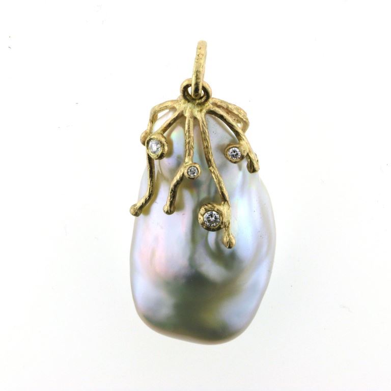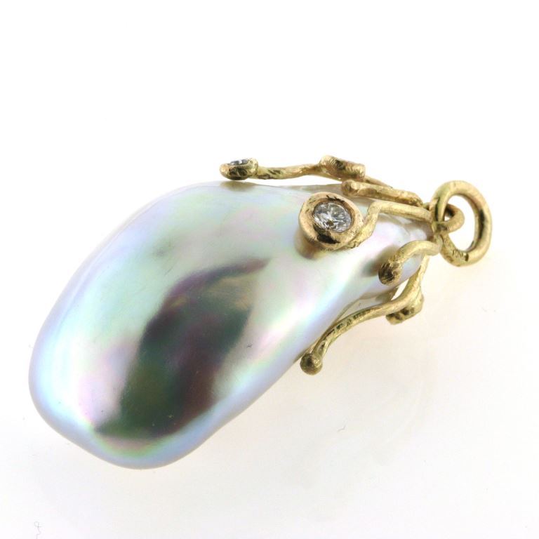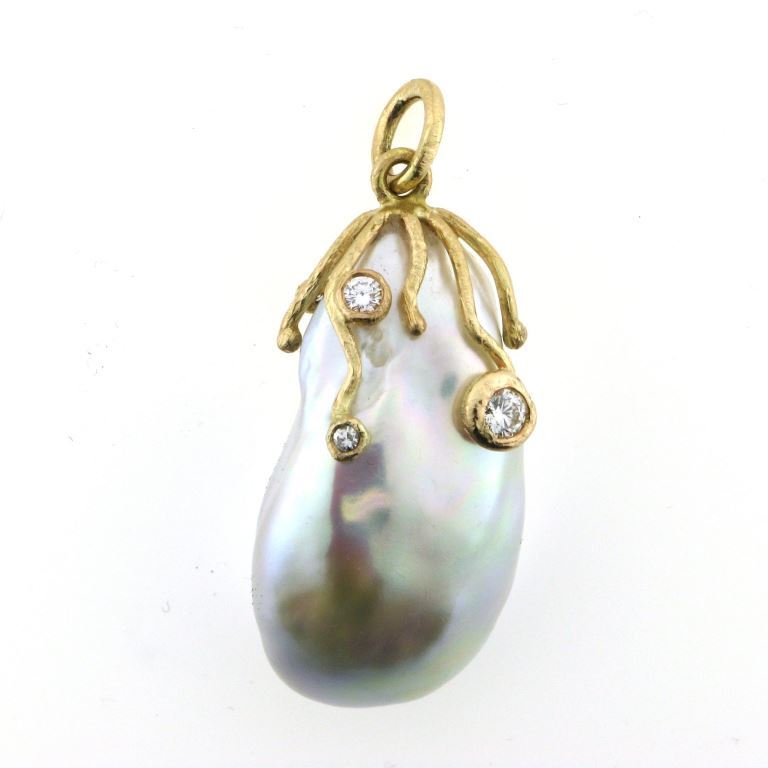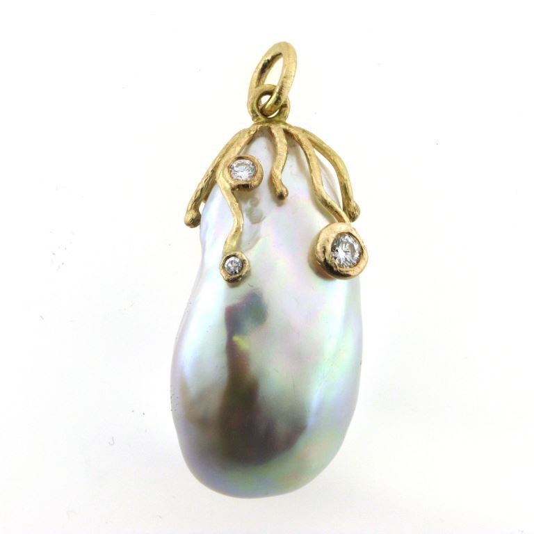 Vedhæng stor natur perle og 7 brill.14 kt.