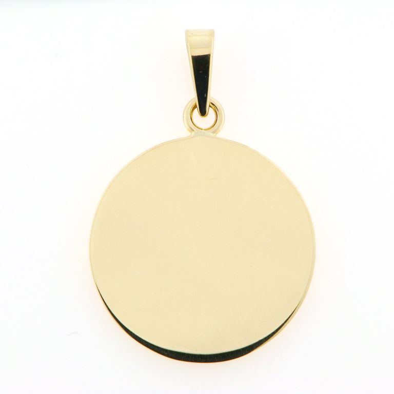 Vedhæng "tag" rund plade 10 mm. brillant 0,02 w/vs. signet med øsken og kontra øsken 8 kt.