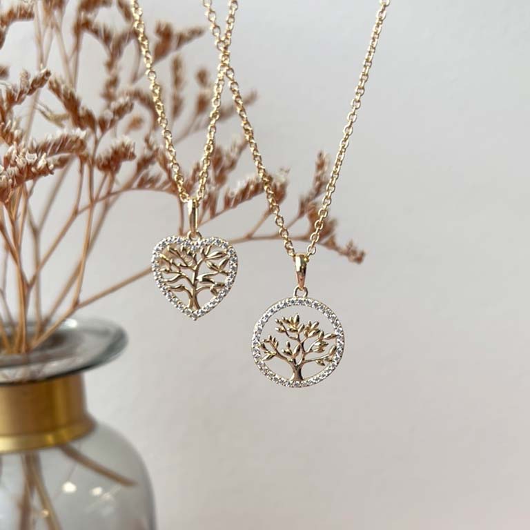 Dette fortryllende vedhæng fra Scrouples kombinerer symbolikken af Livets Træ med elegance og skønhed. Hjertet er udført i 8 karat guld og prydes af funklende zirkoniasten, der omslutter træets grene med et glitrende skær. Livets Træ symboliserer vækst, styrke og forbindelse til naturen, hvilket gør dette smykke til en meningsfuld gave til en elsket eller som en personlig påmindelse om livets skønhed. Den medfølgende kæde i forgyldt sølv supplerer vedhænget perfekt og sikrer, at det sidder smukt om halsen. Dette vedhæng er både en tidløs klassiker og et unikt statement-piece, der kan bæres til enhver lejlighed.