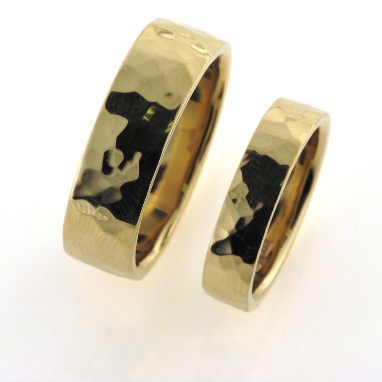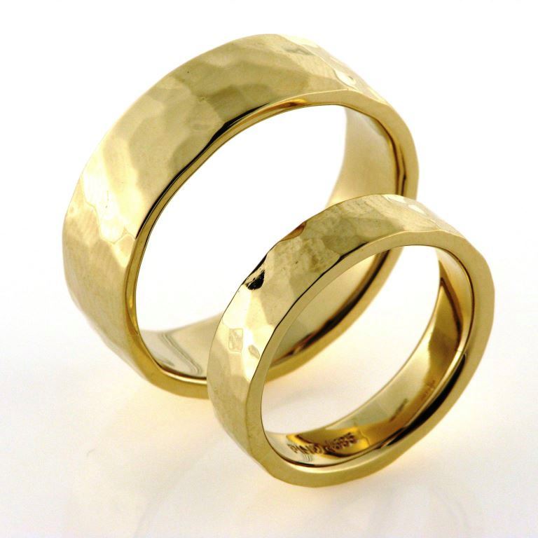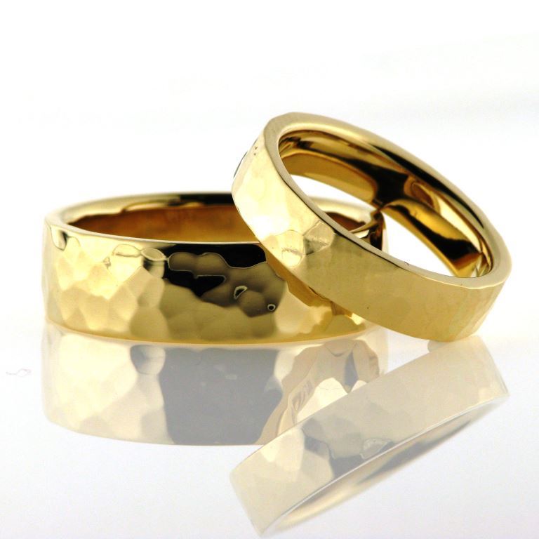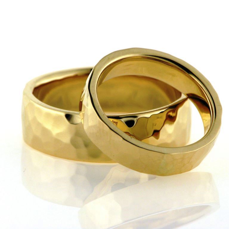 1 par vielsesringe, håndsmedet med hamret overflade