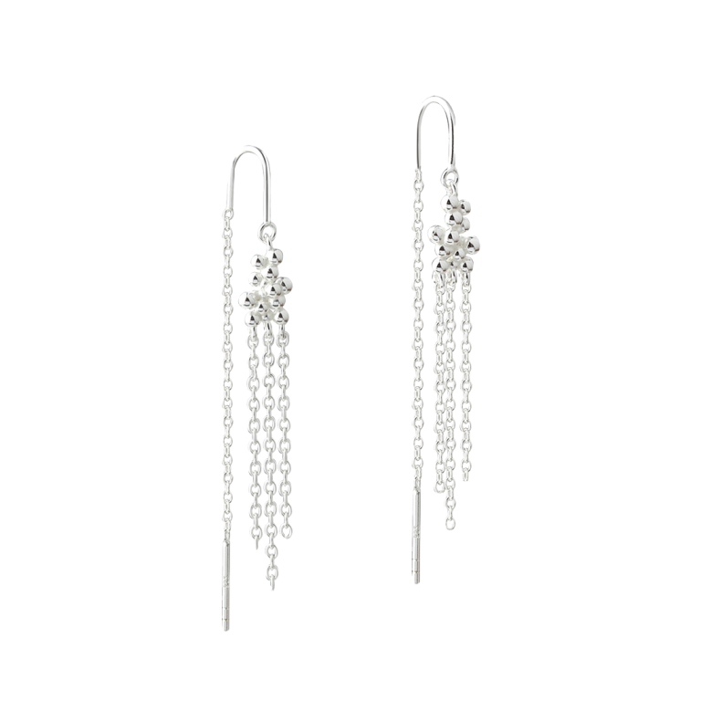 Smykke ørehængere med en klynge af små kugler, pyntet med bevægelige kædestykker. Kan bæres for sig, eller kombineres med andre øreringe fra Aya serien.