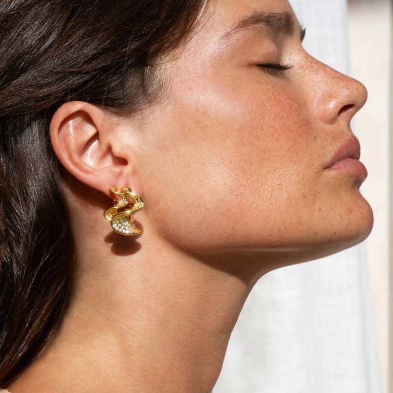 Fantastisk smukke øreringe med flotte buer. De populære Rhumba-øreringe er i denne udgave blevet overdynget med funklende klare zirkonia-sten. Dette er med til at give dem et eksklusivt og elegant udtryk. De er perfekte til en festlig anledning, eller hvis der skal sættes ekstra glitter på hverdagen.