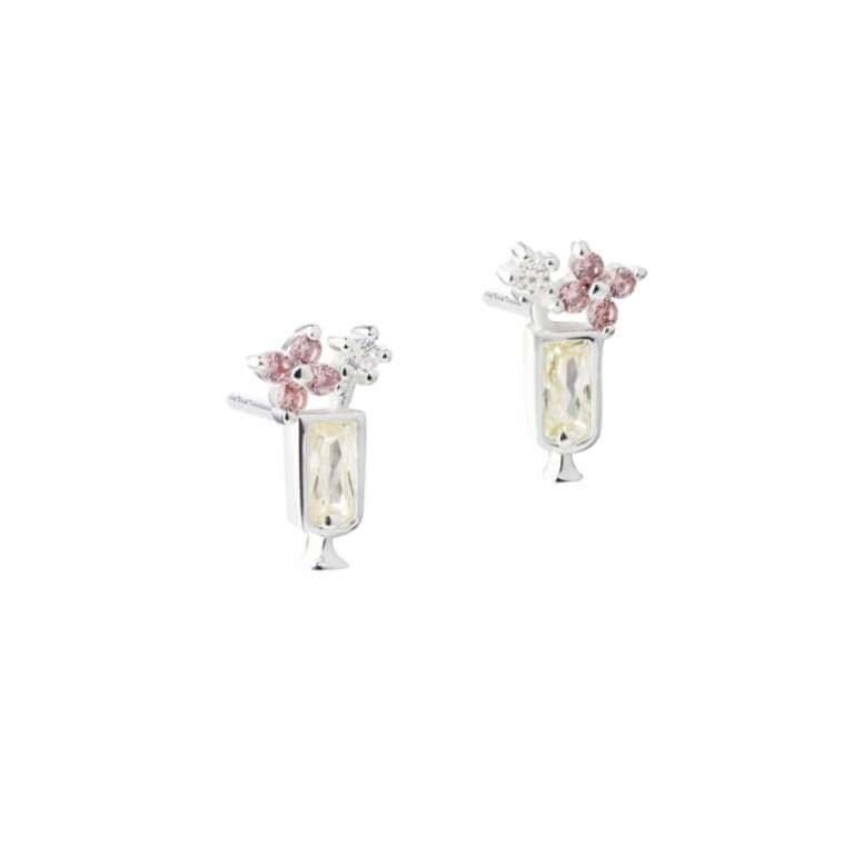Drink er et par små søde ørestikker formet som en lille drink prydet med smukke funklende zirkoniasten i forskellige farver der skal ligne pynt i drinken.