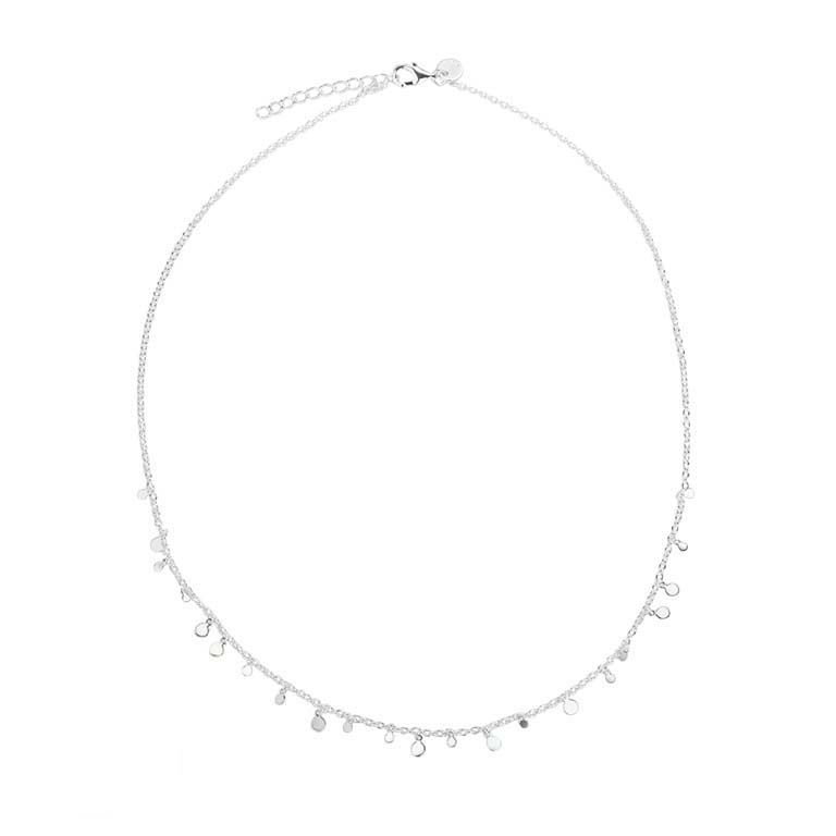 Smuk halskæde med små blanke coins i forskellige størrelser.