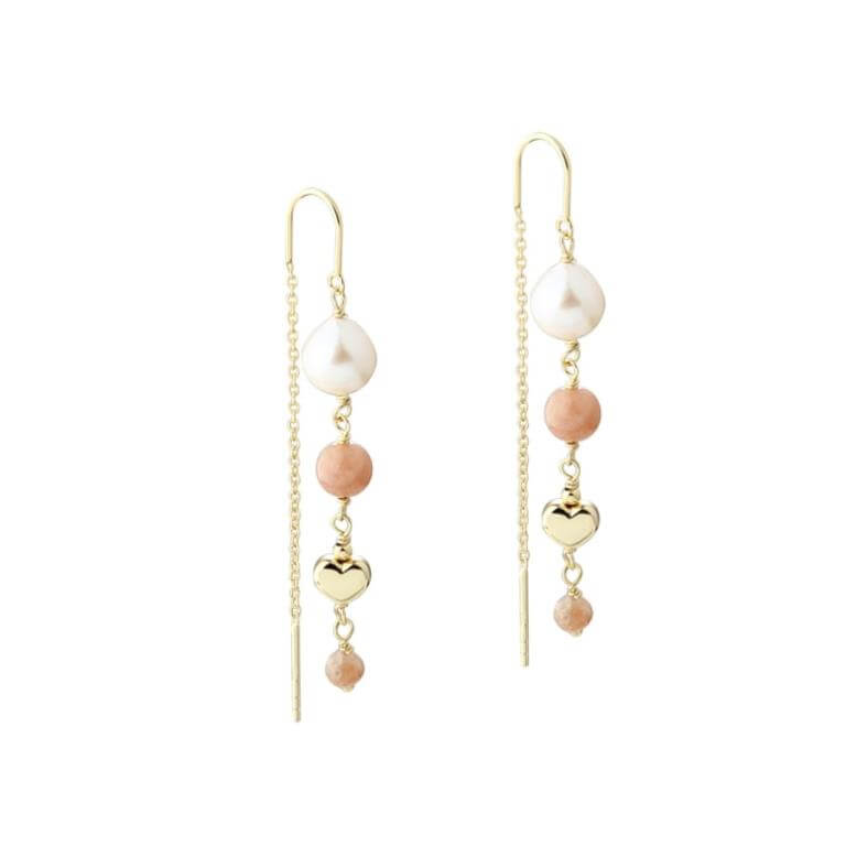 Trænger du til en farverigt og kærlig tilføjelse til dit outfit? Så er Karla Rose Earthread øreringene det helt rigtige valg. Fra den elegante bøjle hænger der en smuk række af hvide ferskvandsperler, farverige facetterede rosa sunstones og de smukke blanke Karla hjertevedhæng. I fin samhørighed danser disse frit fra bøjlen og giver masser af liv og farve.