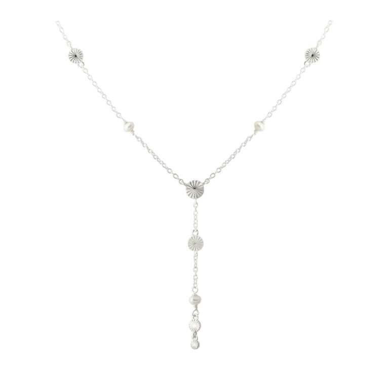 Smuk Y-halskæde prydet med et miks af magiske hvide ferskvandsperler og skønne Line-led der funkler i lyset med deres facetterede overflade. Style den alene eller kombinér den med andre skønne halskæder fra Aqua Dulce.
