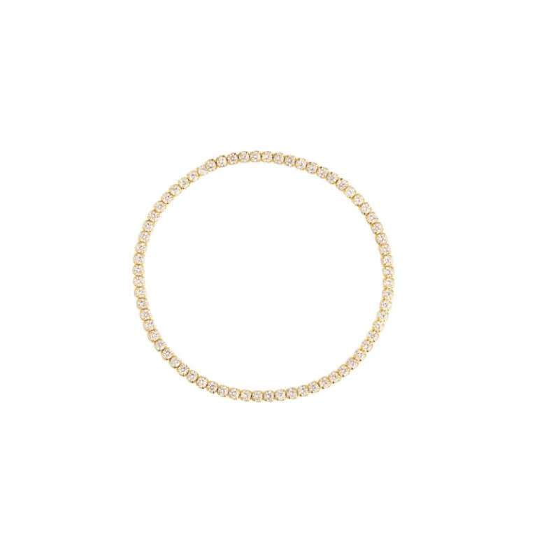 Smukt tennisarmbånd med fliksibelt system der gør, at armbåndet kan udvide sig i ledene så du nemt kan få det af og på. Armbåndet er prydet med funklende klare zirkonia-sten (2,5 mm).