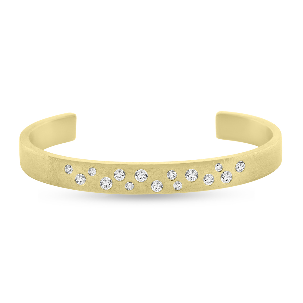 Armring 15 brillanter, åben i bund firkantet rekt. tråd 14 kt.