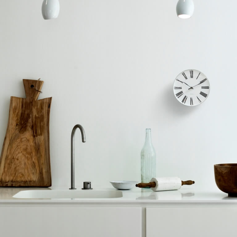 Arne Jacobsen vægur - Roman - hvid/sort - 21 cm