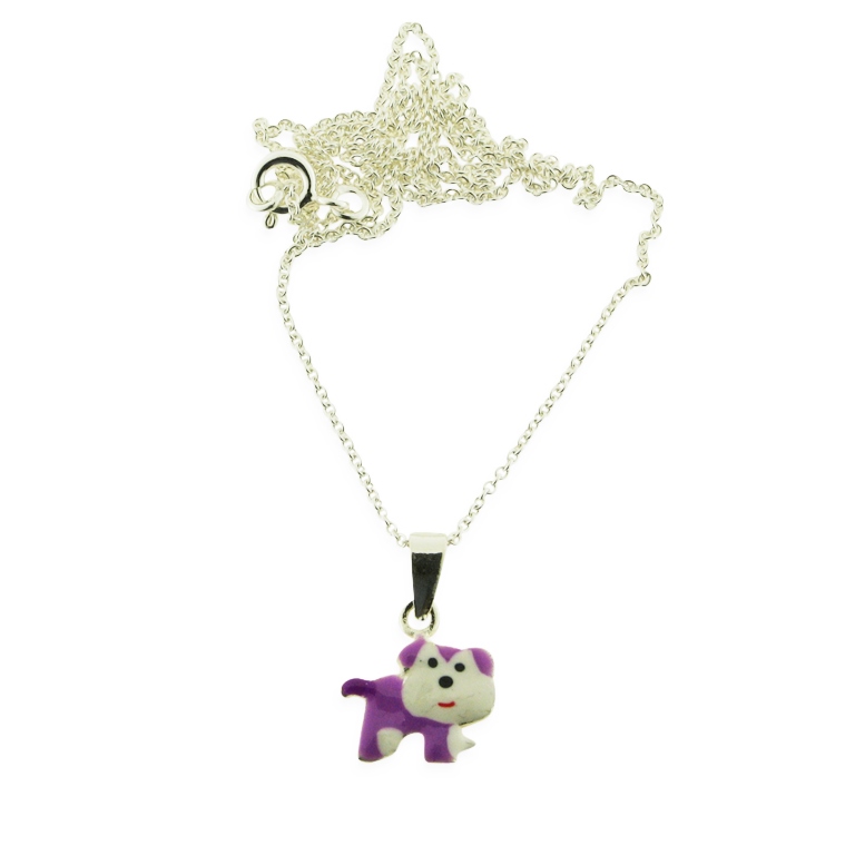 Sød halskæde hund med lilla emalje fra Bella & Valdemar by Pind.