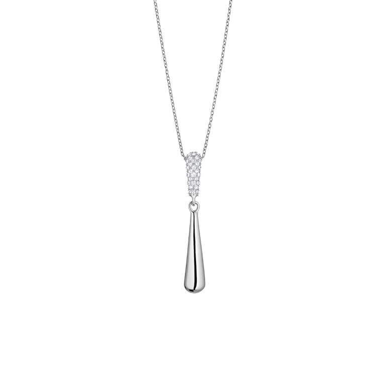 Let som en brise, klar som is: Denne BERING-halskæde forener nordisk lethed med flydende elegance. I midten hænger et dråbeformet vedhæng i blankpoleret rustfrit stål – minimalistisk, feminint og tidløst. Vedhænget er forbundet med kæden gennem et fint udsmykket element med glitrende zirkonia. Stenene tilføjer et diskret skær – som sollys på frisk sne. Den fine kæde fremhæver smykkets lethed og får vedhænget til at svæve nærmest vægtløst.