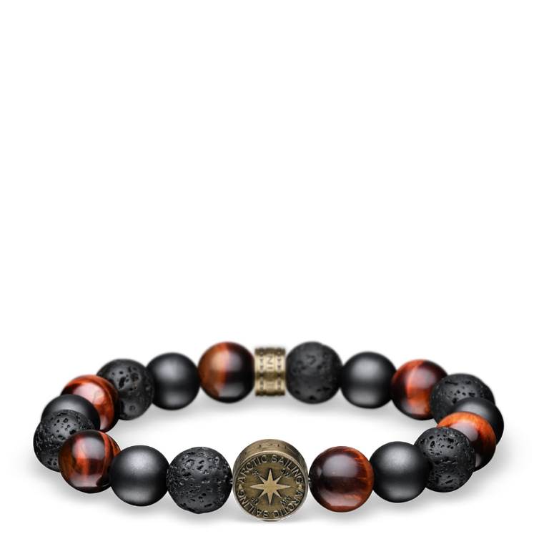 Flot og stilrent herrearmbånd fra Bering med tigerøje, lavasten og keramik.