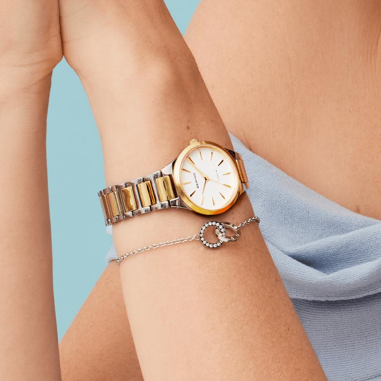 Bering dameur titanium bicolor lænke safirglas 30mm