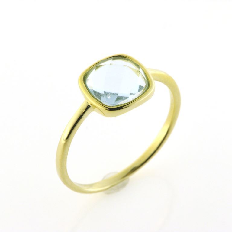 Smuk ring i sølv forgyldt med syntetisk aquamarin.
