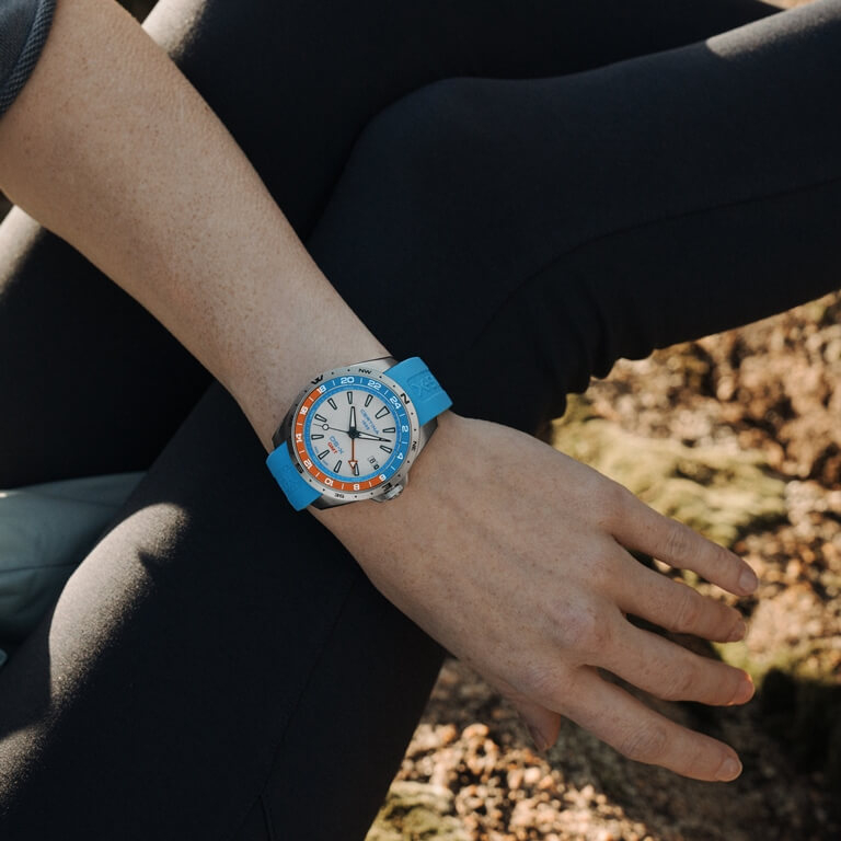 DS-X GMT er udviklet til dem, der trives i naturen, og kombinerer teknisk mestring med urokkelig styrke. Med den nye DS Concept Extreme Shock Resistance og HeavyDrive™-teknologi er den lige så robust som din eventyrlyst. Fra skovregn til barske stier vil dette ur være din betroede allierede på enhver rejse. Stol på det, uanset hvor dit næste skridt fører dig hen.