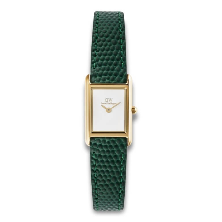 Daniel Wellington Bound Mini Gold dameur stål grøn læderrem 3bar 17mm