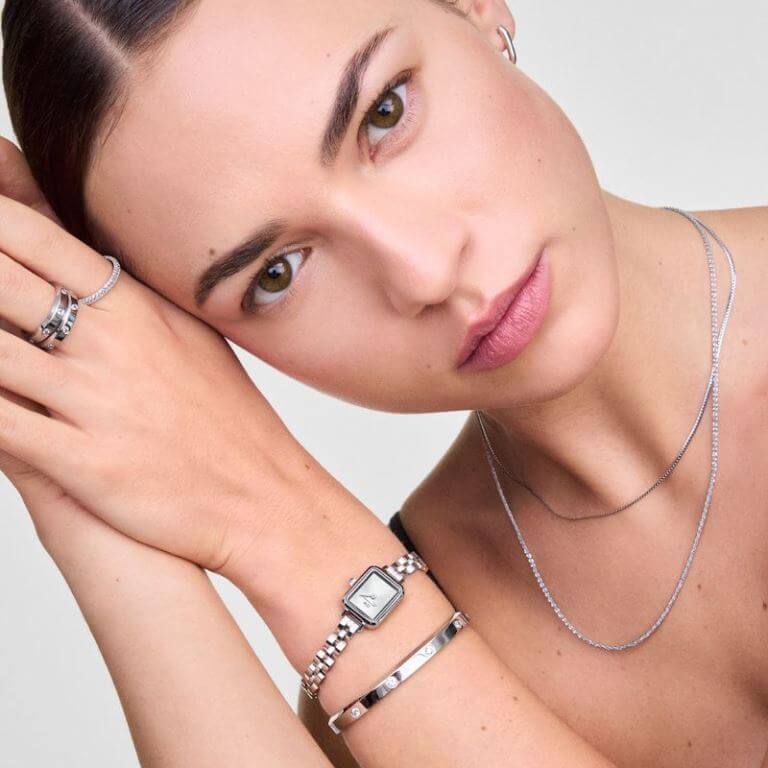 Smukt og elegant dameur i en petit udgave med masser af charme. Uret har en changerende sølvfarvet skive og en lækker lænke i rustfrit stål med foldelås. Et ikonisk ur som passer til alle outfits.