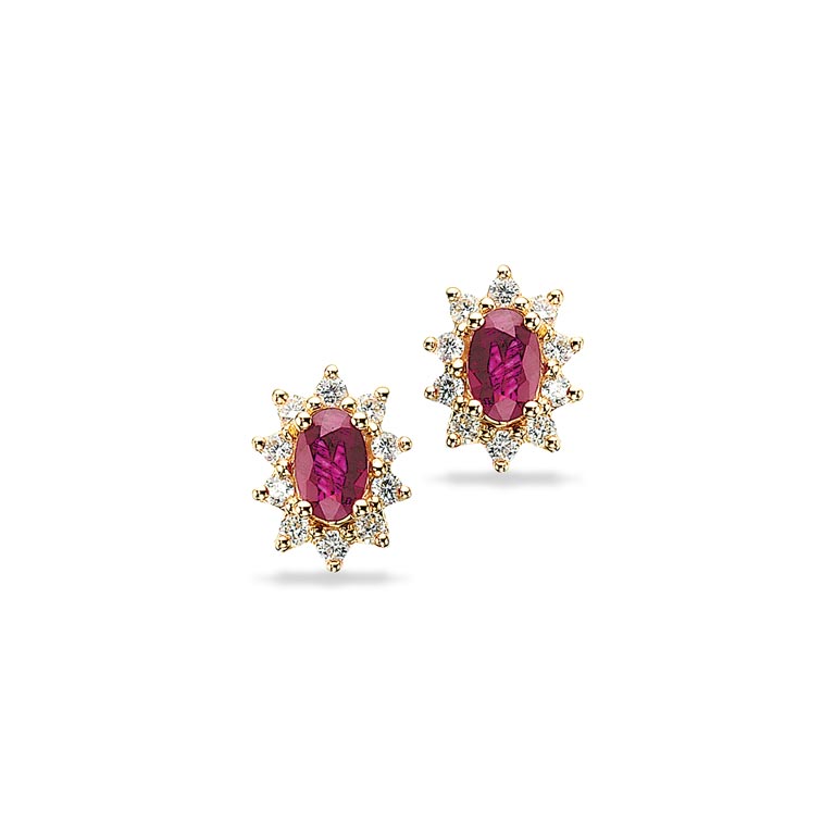 Diana ørepynt roset 0,20 H-W/SI-rubin 14 kt.