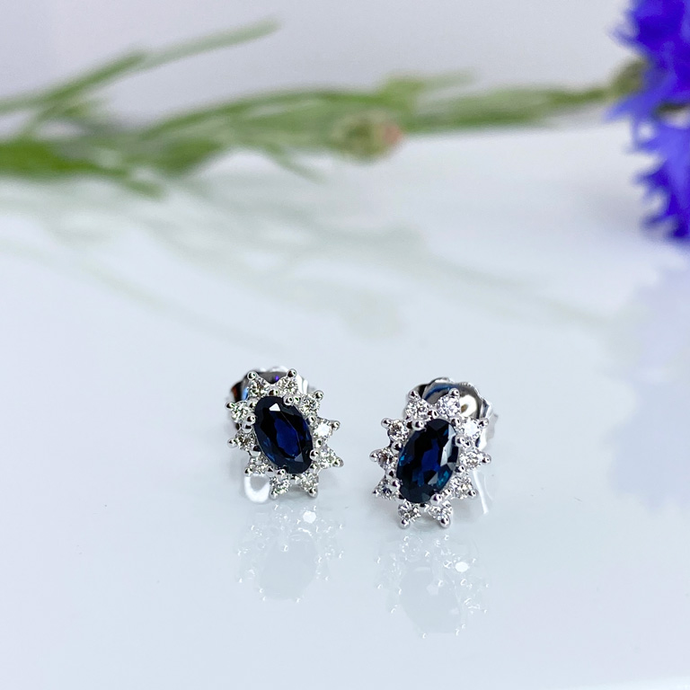 Disse Diana roset ørestikker fra Scrouples er et ikonisk valg, der emmer af kongelig elegance og tidløs skønhed. Fremstillet i 14 karat hvidguld, er de udsmykket med dybe, strålende blå safirer i centrum, omgivet af glitrende diamanter med en samlet vægt på 0,20 carat, H-W/SI. Kombinationen af safirens mystiske blå tone og diamantens gnistrende lys skaber et smykke, der både er klassisk og iøjnefaldende.