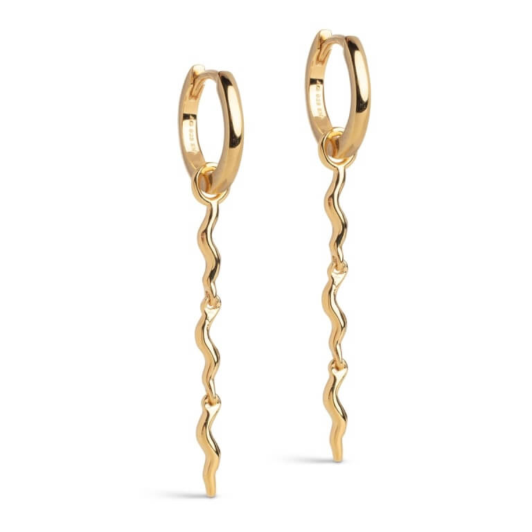 Hydrus øreringene er en super fin og slank ørering med et bølget vedhæng bestående af tre små led, der smukt danner en elegant helhed. Øreringen sidder i en klik-creol og har et enkelt, men cool look, perfekt til både hverdagsbrug og mere raffineret styling. Brug den alene eller miks den med andre øreringe for et personligt look.