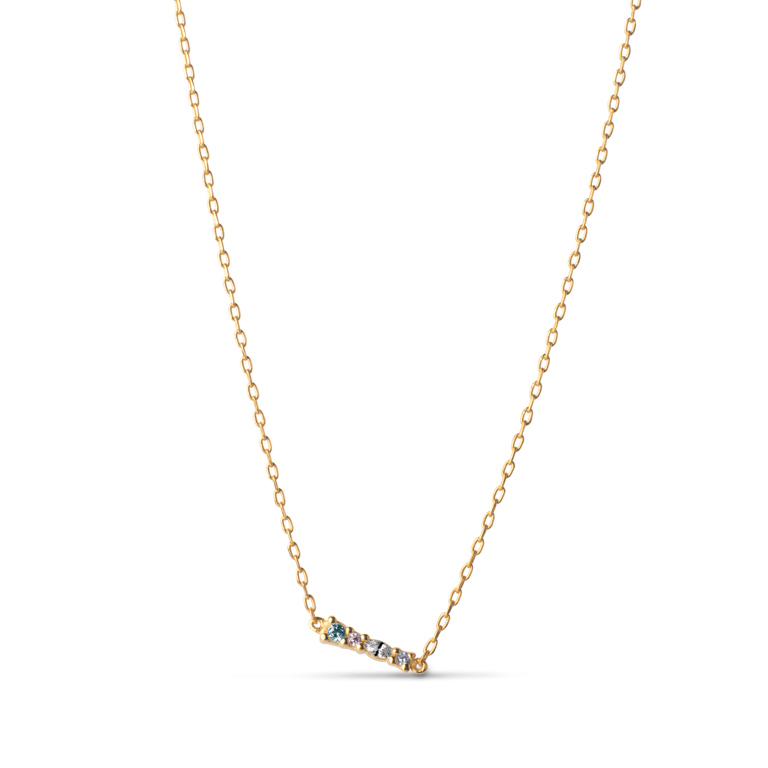 Skøn halskæde med et farverige zirkoniasten, som danner ramme om bogstaverne A-Z.
