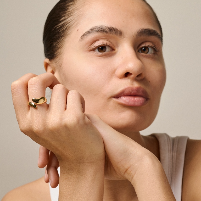 Neli ringen er en lækker organisk ring som smyger sig om fingeren. Den åbne skinne på ringen gør, at den kan justeres så den kan passe flere forskellige ringstørrelser.