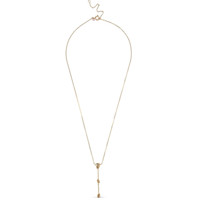 Talia-halskæden, belagt med 18 karat guld, har et organisk og elegant udtryk, da de bløde guldelementer spiller smukt sammen med den fine kæde. Designet er en klassisk Y-halskæde, der falder blidt og flatterende om halsen. De polerede guldformer skaber et luksuriøst og tidløst look. Talia fås også i sølv.
