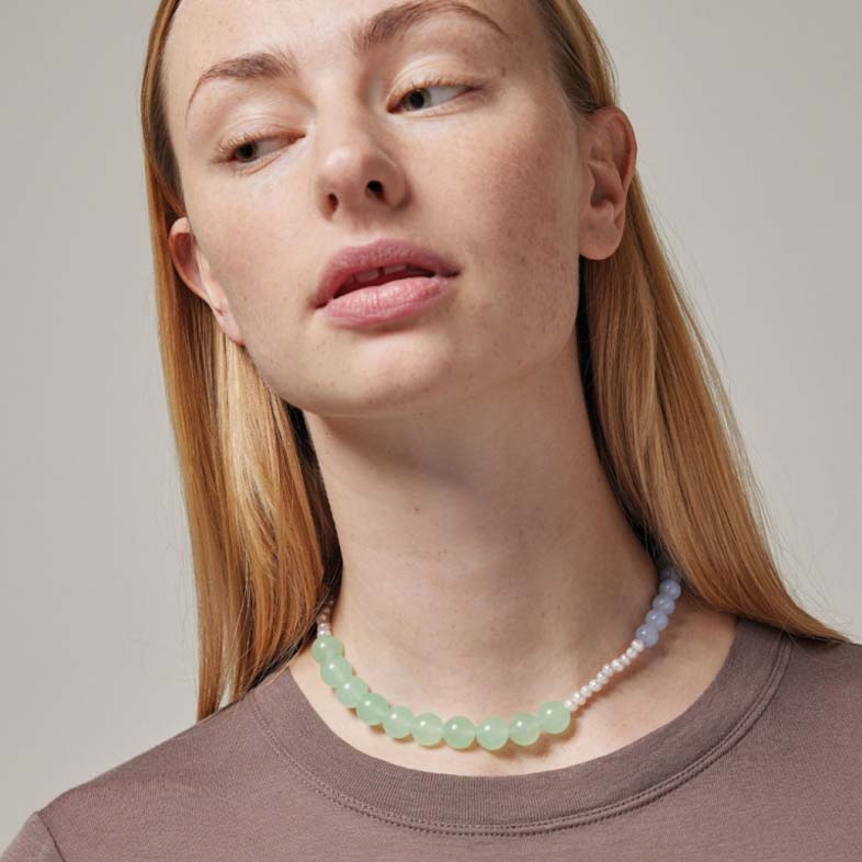 Kombinationen af den kølige blå --- og den varme lysegrønne --- og de barokke ferskvandsperler på Yara halskæden, skaber den smukkeste synergi, der straks giver associationer til eksotiske regnskove og et klart, blåt hav. Yara er en skøn, iøjefaldende halskæde, der vækker glæde og opsigt. Stenene på halskæden er naturlige, og kan derfor variere i nuance og udtryk.