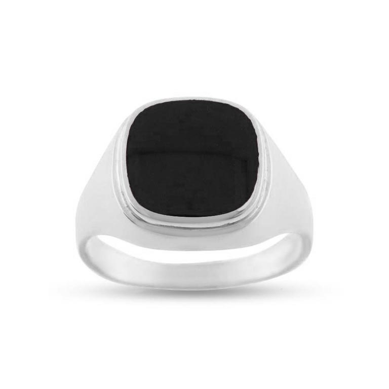 Herrering lukket bund, antik sl. sten, Onyx 12*12 mm 925s.