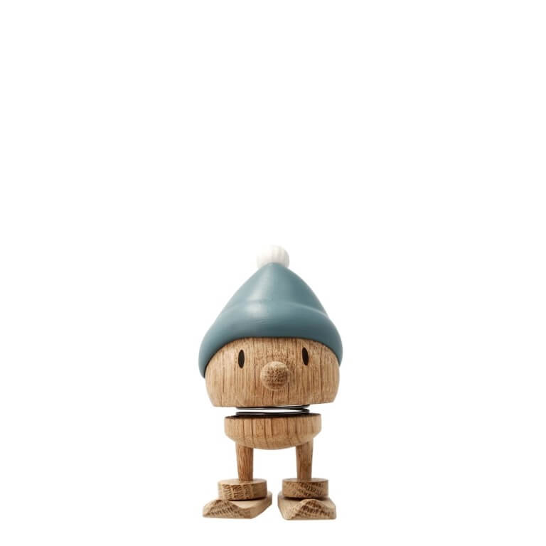 Giv den rødkindede skihoptimist et lille puf og se den hoppe af glæde over den glitrende hvide sne på fjeldet. Skiing Bumble står klar med sin blå tophue – både spændt og stolt – klar til eventyr i vinterlandskabet. Skiene kan tages af og på. Varen er produceret i FSC®-certificeret egetræ (FSC-C166612).