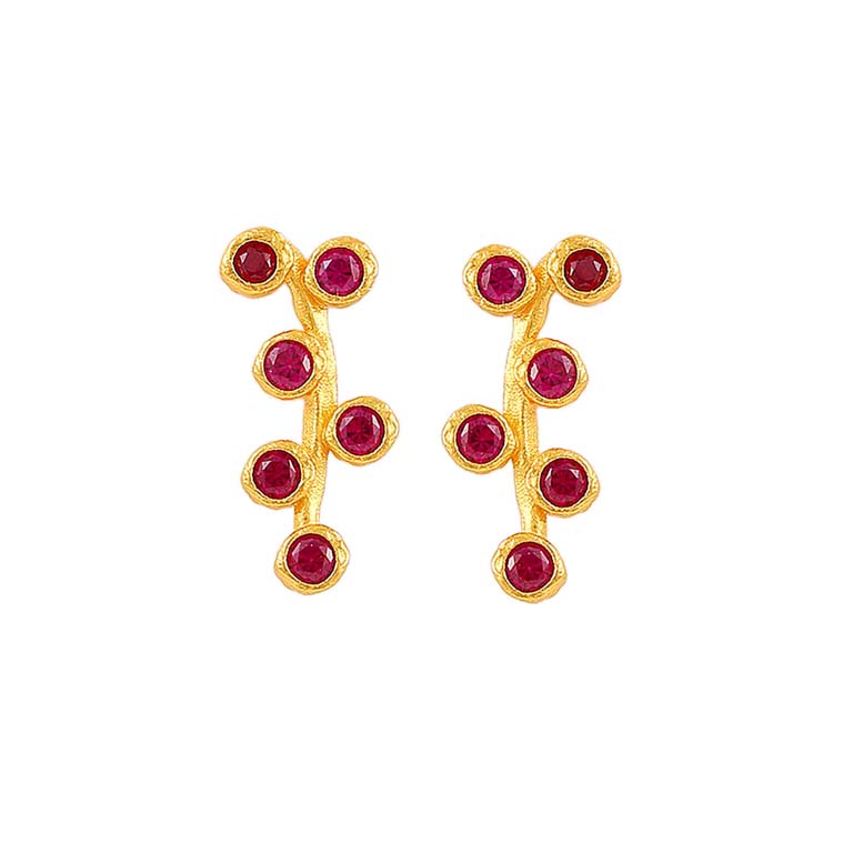 Amber er et par elegante øreringe prydet med funklende røde zirkoniasten fordelt forskudt langs øreringen. Kombinér dem med andre skønne øreringe fra Hultquist for maksimal effekt.